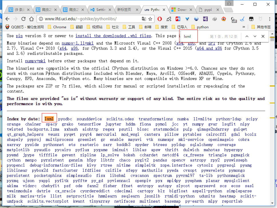 打开Unofficial Windows Binaries for Python Extension Packages这个网址