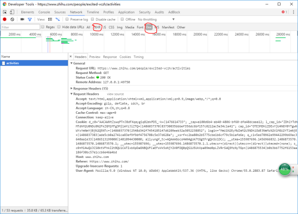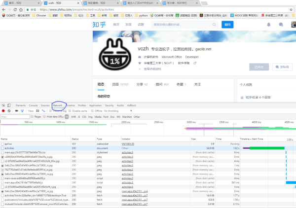 可以看到请求的url是: https://www.zhihu.com/people/excited-vczh/activities