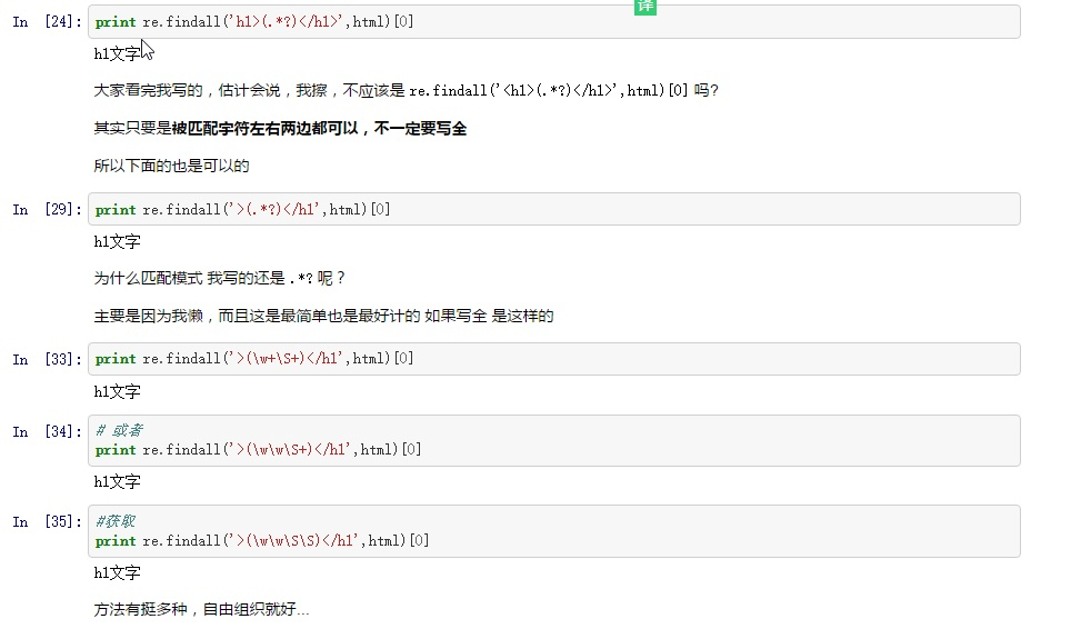 最后再来一个案例,还是上面的html,我们需要匹配的内容是h1文字,代码如下