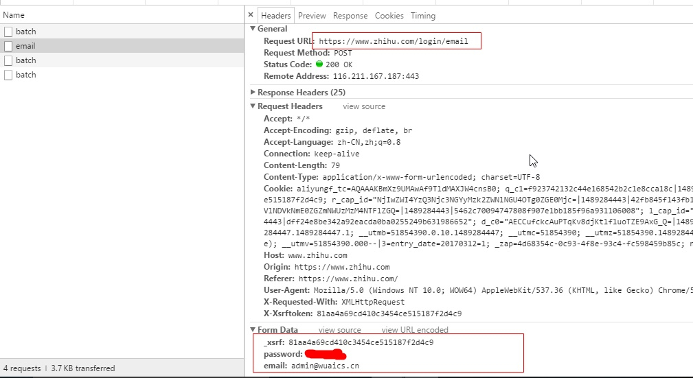 _xsrf - 把_xsrf和自己的账号及密码一起发送(模拟登录)
