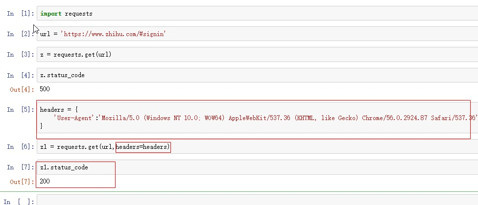 至于为什么会返回500状态码呢?是因为我们用程序来访问知乎被发现了…