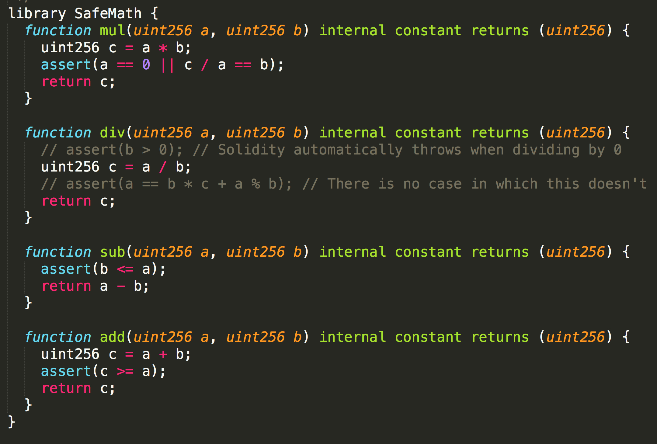 safeMath 是为了计算安全 而写的一个library