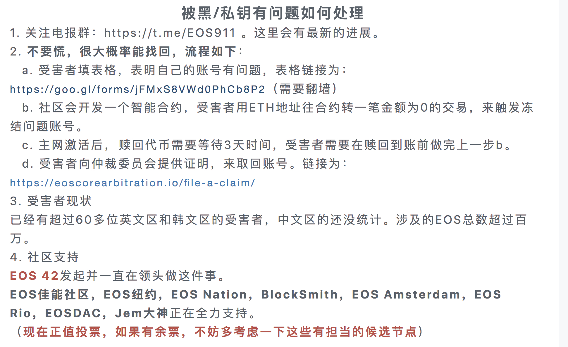 - 如果你发现自己的EOS被盗了,也就是秘钥被更改过了,那么按照上面的链接 申请,基本上可以找回来