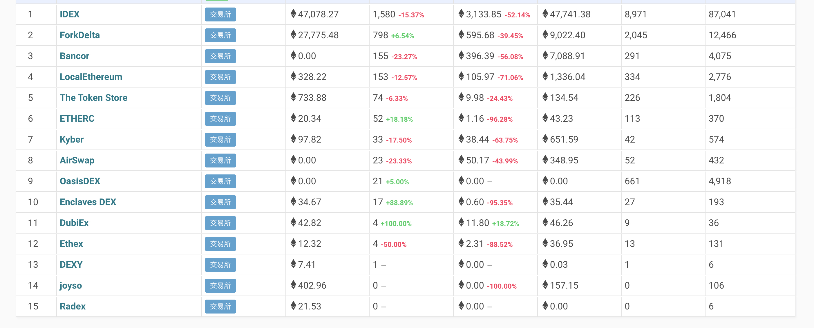 目前ETH上交易所的状况.