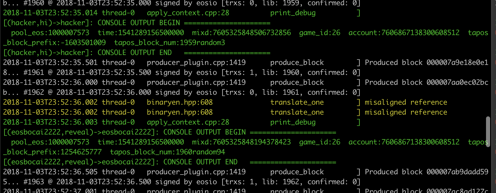 - 必须要把攻击合约与 出结果 的时间控制在一个区块内,要不然 tapos_block_prefix & tapos_block_num 这两个数会发生改变