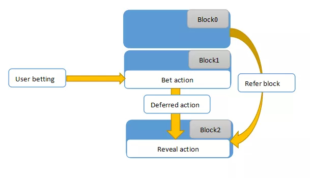 在异步延时开奖机制下,reference block的指向发生了变化。开奖action的reference block是在下注时还未生成的区块,其信息难以提前获取,也就不能抢先计算出游戏结果。