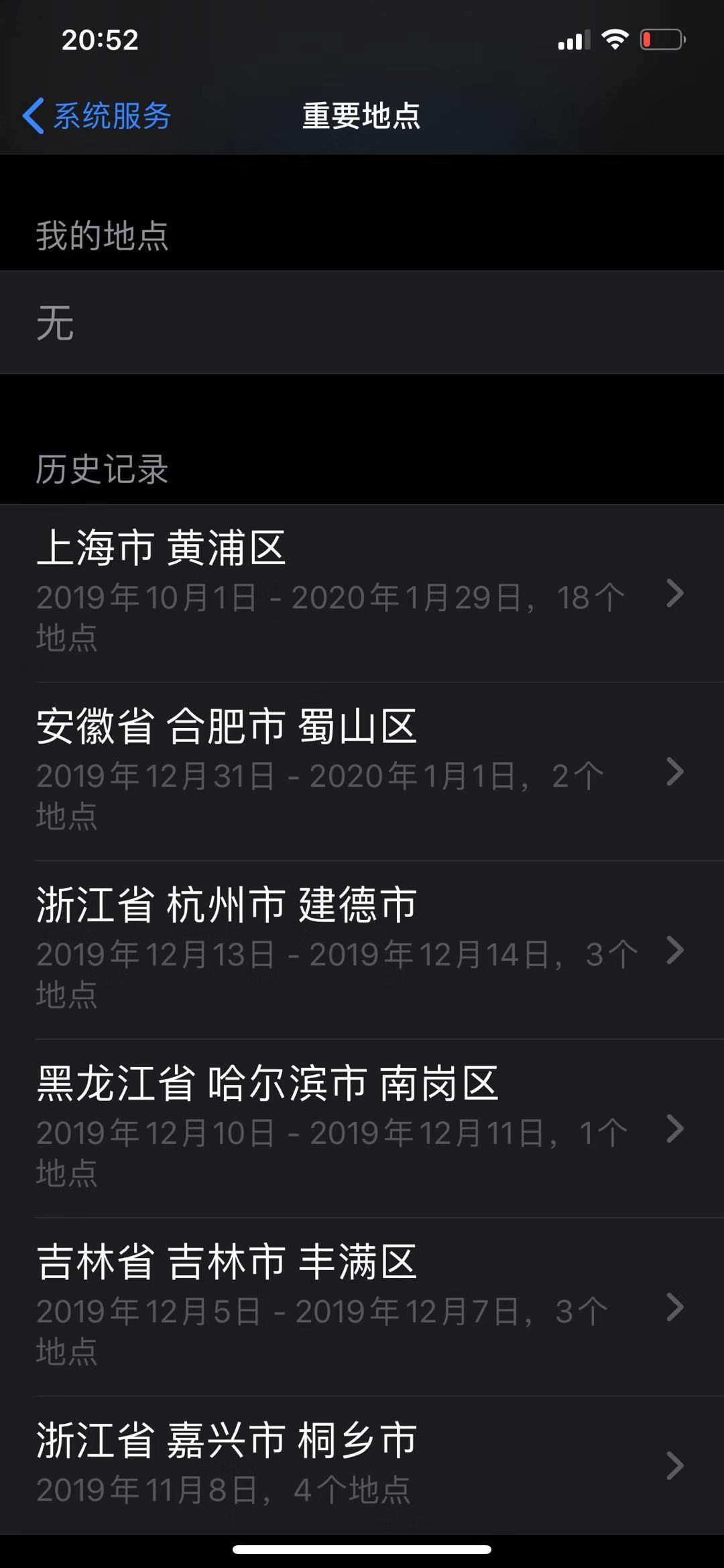 下面一张图是我的,可以看到我最近确实没有去过武汉…